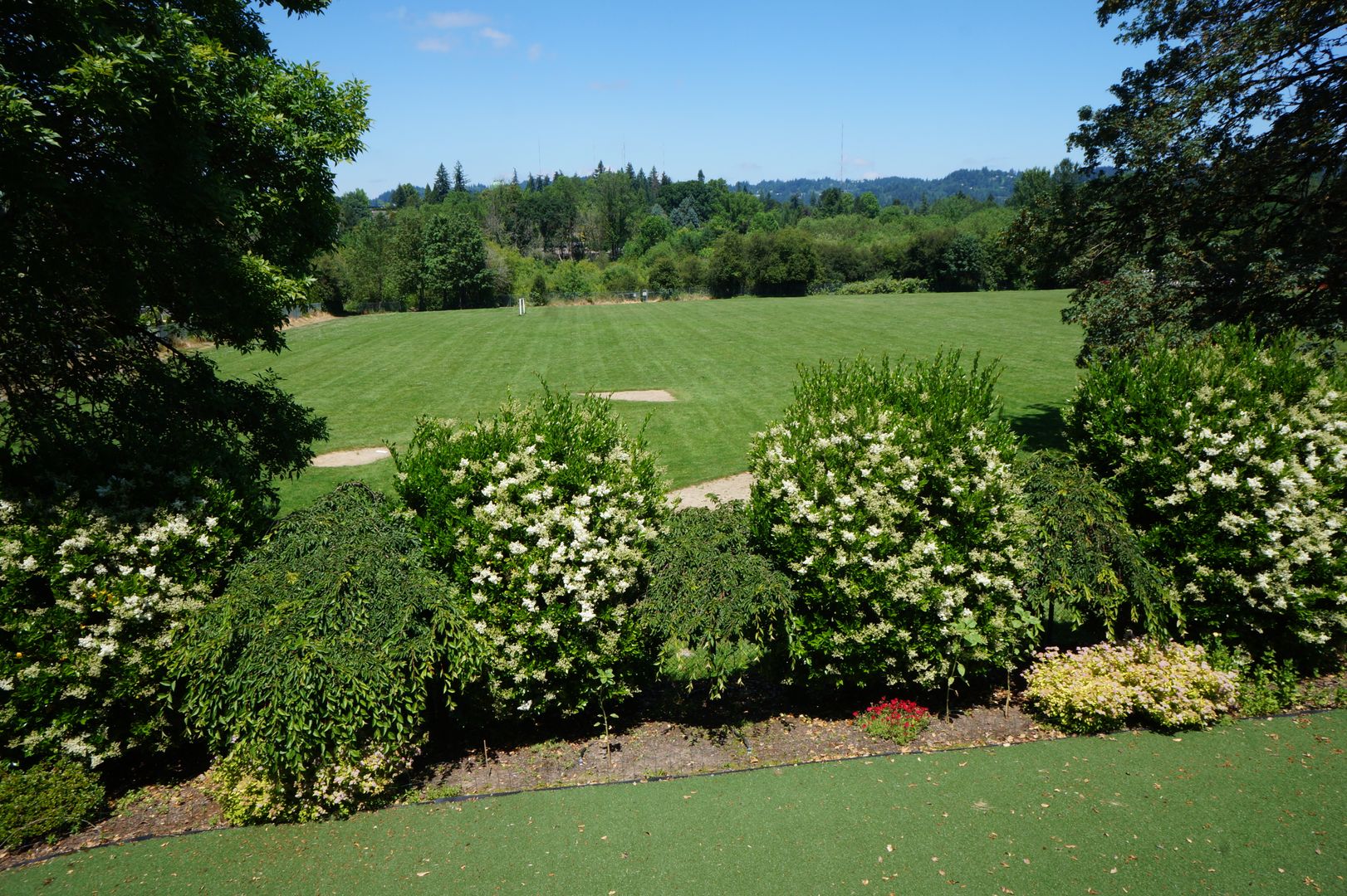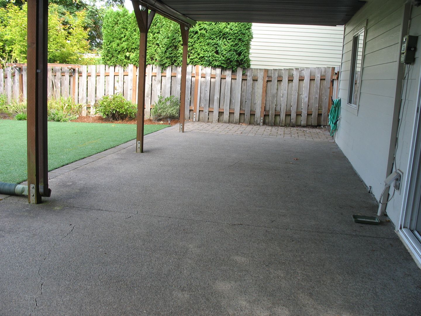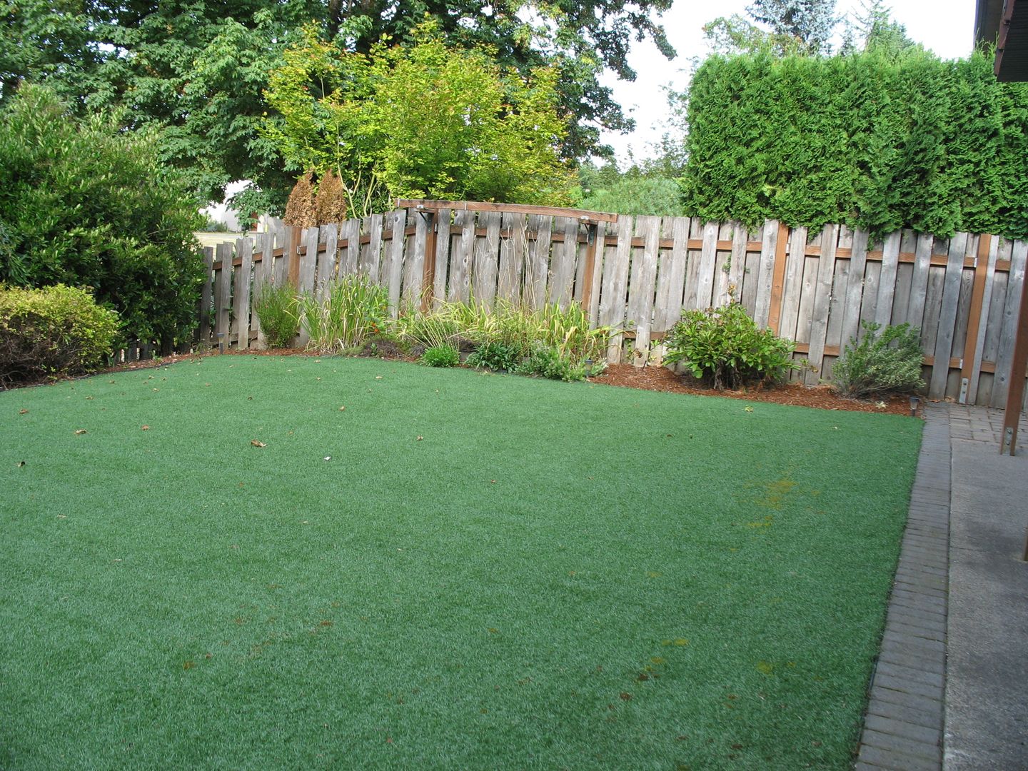 * Large open backyard with auto sprinklers